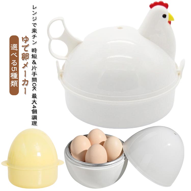 ■レンジ エッグスチーマー 選べる5種類 ゆで卵メーカー かわいい ゆでたまご 最大4個 4個 電子レンジ エッグクッカー ゆでたまごメーカー