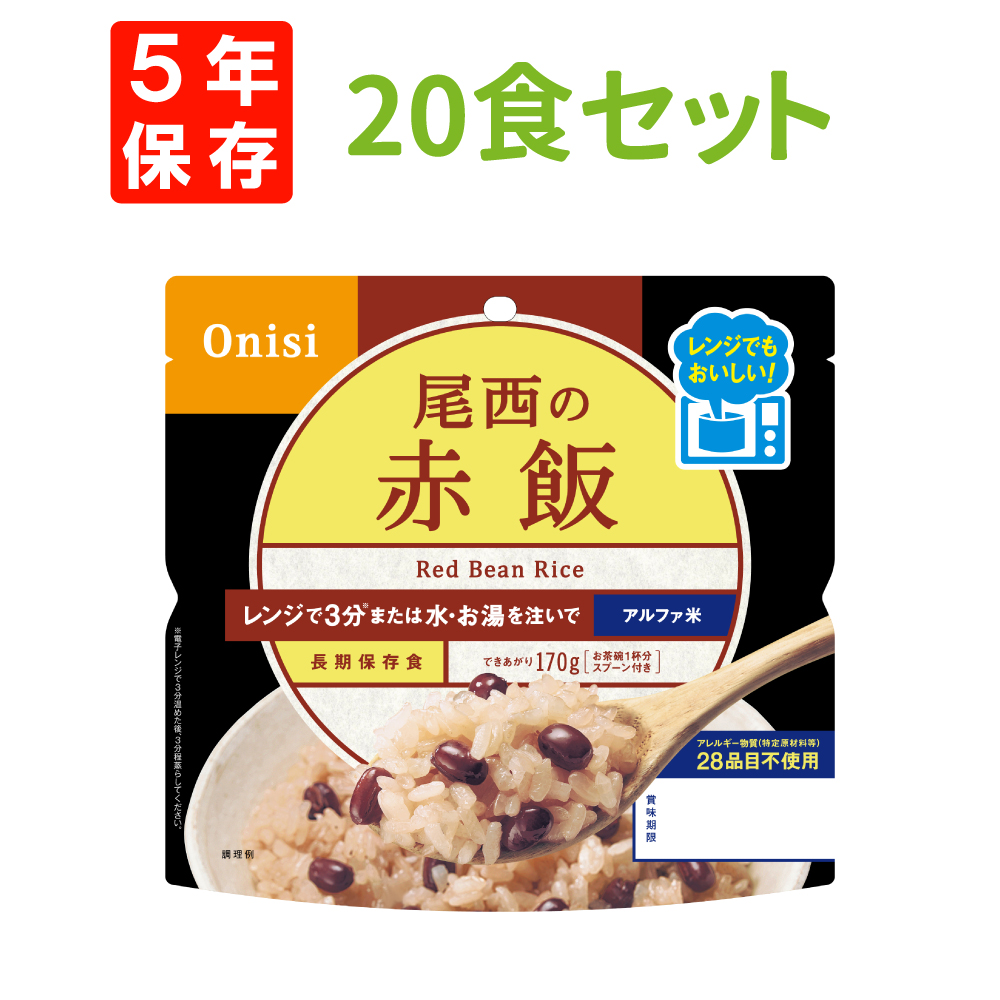 ■尾西のレンジ+(プラス)赤飯 20食 ケース 5年保存 尾西食品 尾西 アルファ米 アルファー米 アルファ化米 電子レンジ 時短 非常食 非常食セ