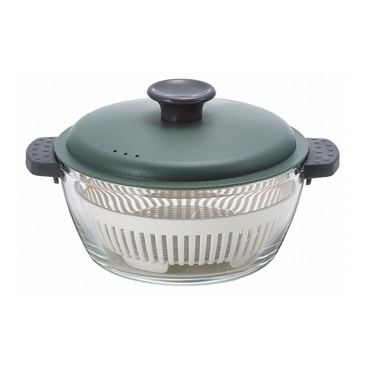 【商品説明】電子レンジもオーブン調理対応のガラス鍋。フタ・ザルを使用したまま電子レンジ調理が可能。電子レンジで蒸し料理も作れます。本体は耐熱ガラス製。フタ・ザル・シリコーンハンドルを外せばオーブンで使用可能。耐熱温度400℃。脱着可能なシリコーンカバー付き。滑り止め付きで安心。ザル付きなのでレンジで蒸し料理ができる。ざるとしても使用可能。蒸気穴付きのフタで蒸気を排出。※直火で使用不可。【サイズ】幅20.5×奥行17×高さ12.6cm【材質】本体/耐熱ガラス(耐熱温度400℃、耐熱温度差120℃、耐冷温度−20℃)、フタ・ザル/ポリプロピレン(−20℃〜120℃)、ハンドル/シリコーンゴム(−20℃〜180℃)【生産国】中国【備考】レシピ付き※直火で使用不可。電子レンジ対応【特長】レンジ調理、レンジ、オーブン、調理、調理器具、調理器、簡単、耐熱、ガラス、フタ、蓋付き、鍋、ボウル、ボール、ざる付、ザル、料理、容器、野菜、食品、レシピ、カーキ、1L、グリーン、緑、くすみ