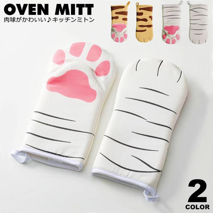 鍋つかみ ミトン かわいい 耐熱 鍋掴み 耐熱ミトン キッチングローブ 耐熱グローブ オーブン手袋 なべつかみ オーブンミット 電子レンジ 左右兼用 ネコ y6