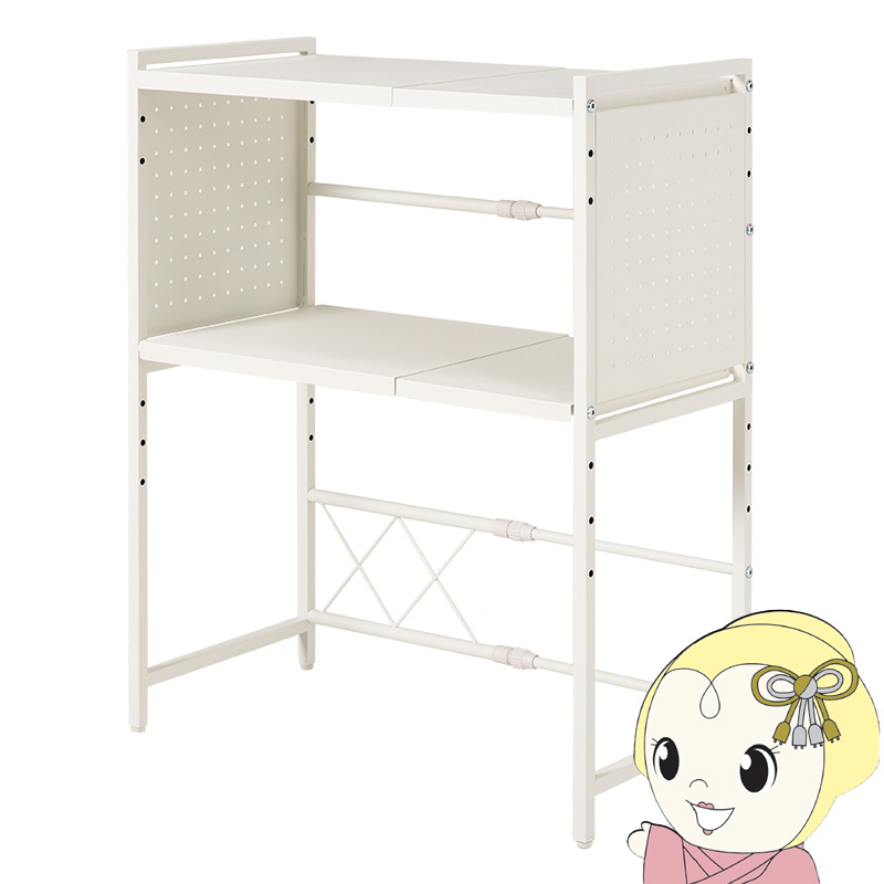 ■レンジラック 2段タイプ 伸縮 キッチン レンジ上 ラック レンジ上 収納 電子レンジ レンジ台 食器棚 炊飯器 トースター 耐水 可動棚 台所