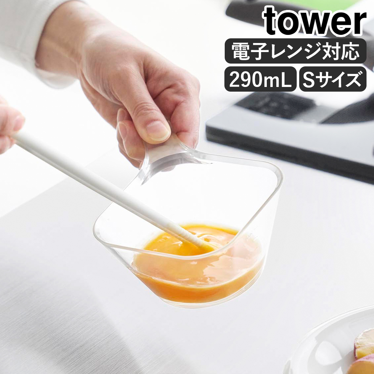 ■[ 電子レンジ対応洗いやすいハンドル付き下ごしらえボウル タワー S ]山崎実業 tower ボウル 計量カップ 290ml 日本製 耐熱 電子レンジ