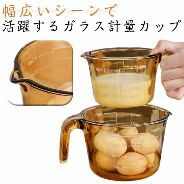 ■計量カップ キッチンツール 取っ手付き ガラス 目盛り付き 電子レンジ オーブン 1000ml 1L 計量 カップ 目盛 食洗機 対応 耐熱ガラス メ