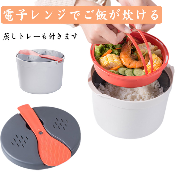 ■電子レンジ ご飯 電子レンジ炊飯器 簡単調理 炊飯器 しゃもじ付き 調理道具 ごはん 1人用 水切り 炊飯器 ご飯が炊ける 白米 デザイン お