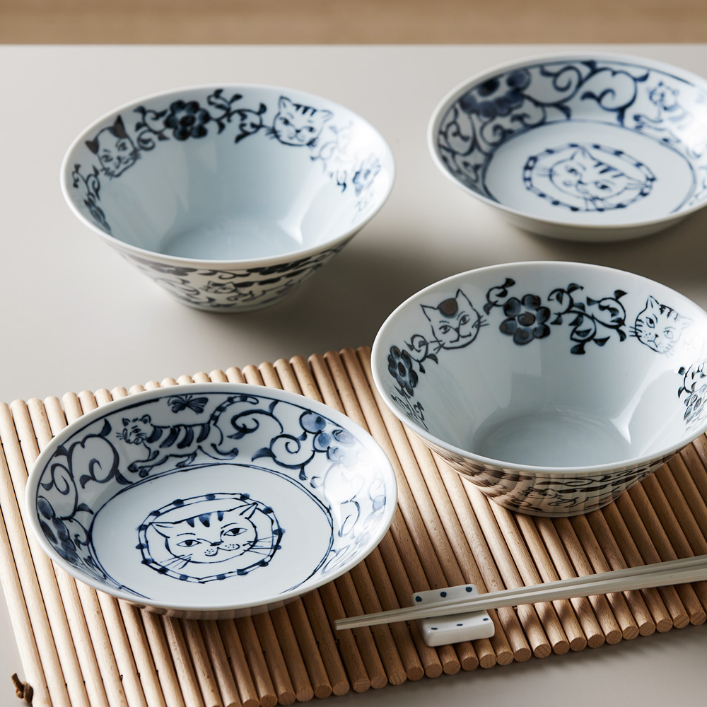 ■【ベルメゾン】美濃焼 手書き風ねこの食器セット[日本製] 【食洗機/電子レンジ対応】
