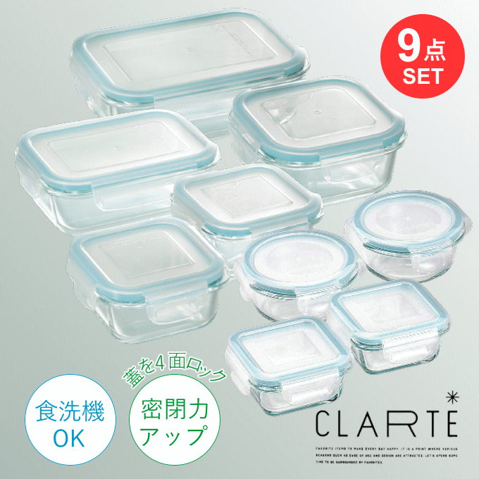 ■保存容器 9点 セット 耐熱ガラス 電子レンジ オーブン 冷蔵 冷凍 食洗機 で使用OK 密閉 力アップ 耐熱 ガラス 耐熱容器 耐熱ガラス容器