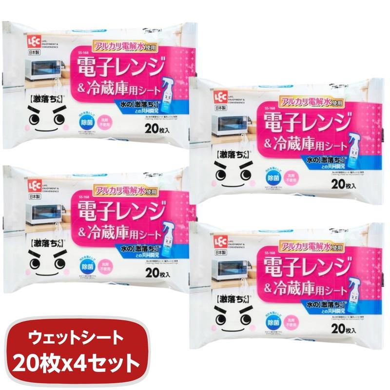 ■ウェットシート キッチン用 電子レンジ&冷蔵庫用 お掃除シート 激落ちくん アルカリ電解水 Ba水の激落ちシート 20枚入 4個組