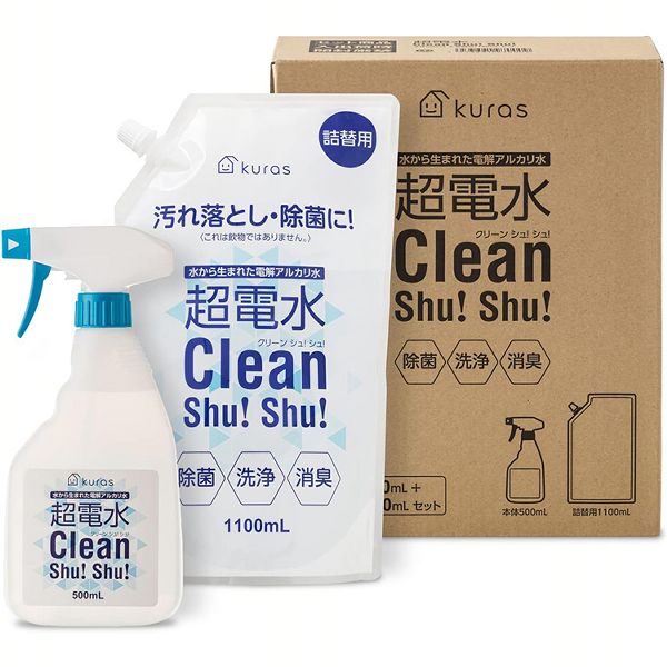 ■超電水クリーン 500ml本体+1100ml詰替セット 電解水 アルカリイオン水100% すいすい 掃除 時短 油汚れ エアコン掃除 電子レンジ 換気扇
