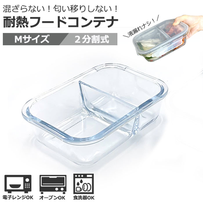 ■耐熱フードコンテナ(2分割)あすつく 保存容器 密閉 耐熱 耐熱ガラス ガラス 冷蔵庫 電子レンジ オーブン OK 冷蔵 冷凍 温め 食洗器