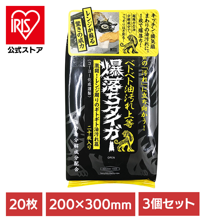 ■爆落ちタイガー コーヨー化成 20枚入り 3個 セット 電子レンジ 掃除 シート 厚手 大判 ウェットシート 拭き取り 換気扇 キッチン シンク
