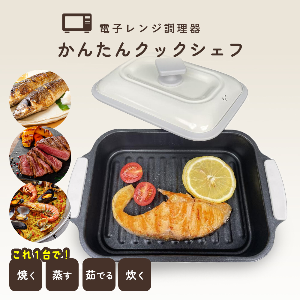 ■電子レンジ用調理器 かんたんクックシェフ レシピ付き 簡単操作 DL-YU454 デジタルランド 角型 電子レンジ 調理器 レンジで簡単 レンジ