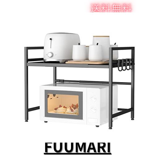■TKUIN レンジ上ラック キッチンラック 伸縮式 トースターラック 幅(39-62cm) 伸縮可 オーブンレンジラック 棚板高さ調節可 電子レンジ 台