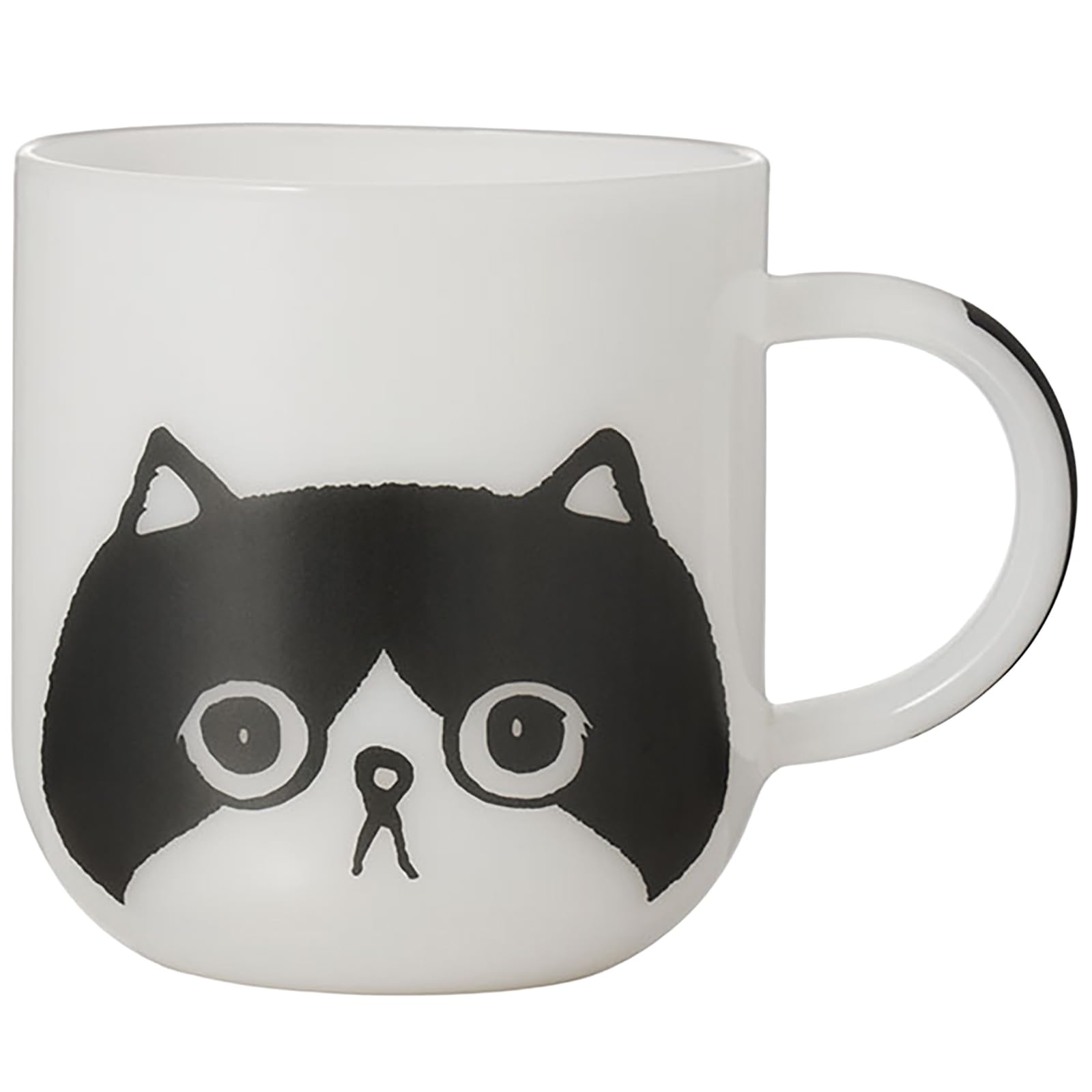 ■大塚硝子 にゃんこず マグカップ 耐熱ガラス 約350ml 猫 大きめ ハチワレ 乳白 電子レンジ 食洗機対応 日本製 49P178