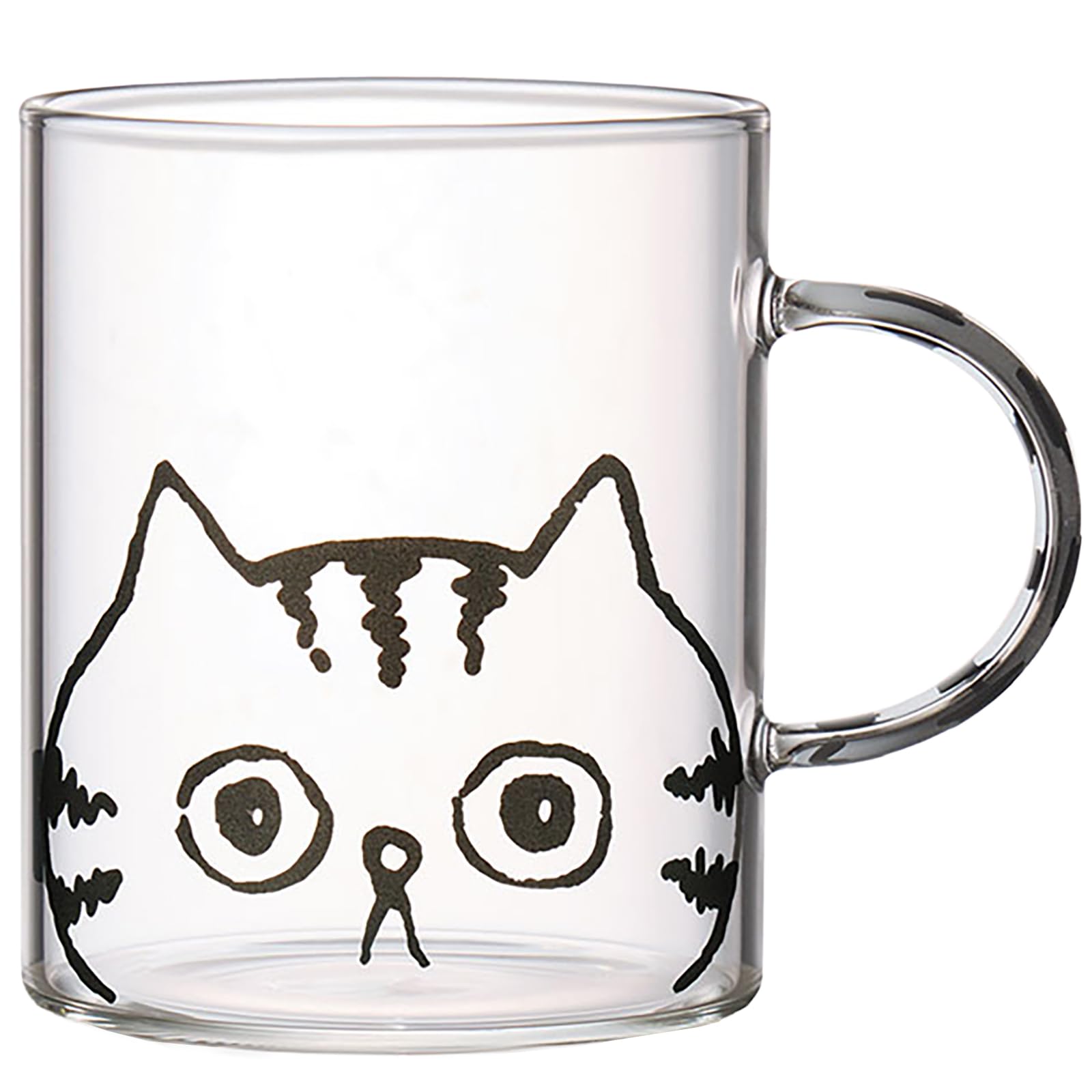 ■大塚硝子 にゃんこず マグカップ 耐熱ガラス 約350ml 猫 大きめ トラ 電子レンジ 食洗機対応 日本製 49P172