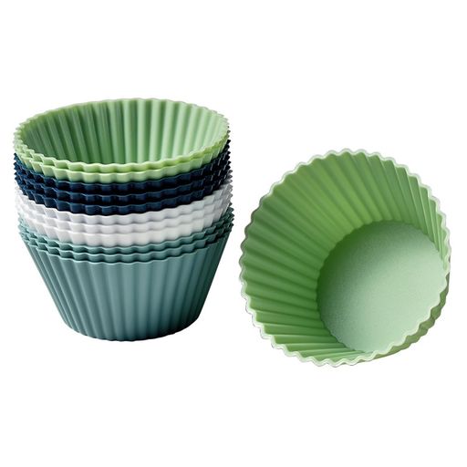 ■MINIMOOD 食品級シリコンベーキングカップ 12個セット 耐熱-40°C~230°C 電子レンジ・オーブン・食洗機対応 四色(白/青/薄緑/濃緑) 非粘