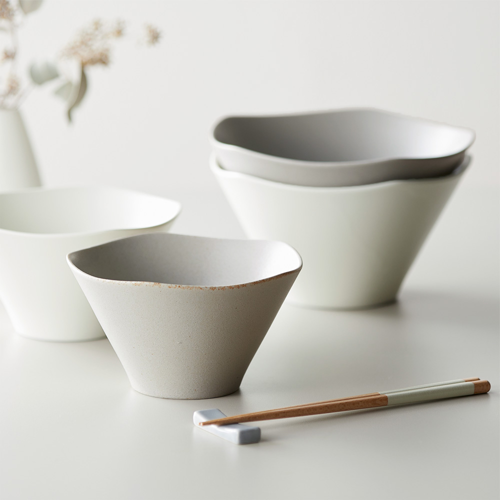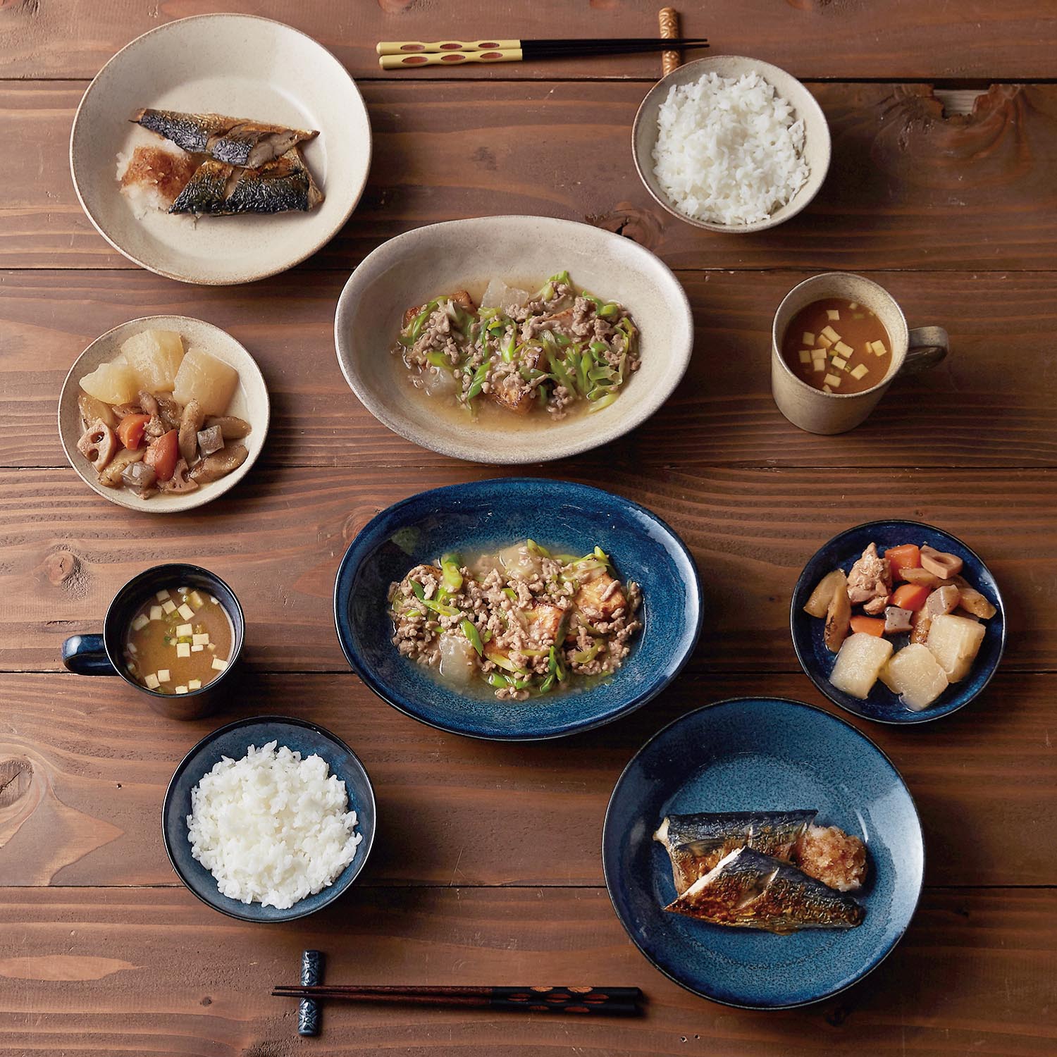 古くより日本の代表的な「日常使いのうつわ」として、親しまれてきた美濃焼。美濃焼のうつわは、手になじむ質感や、人のくらしを考えてつくられた便利なサイズで、生活に溶け込みます。そんな美濃焼を日々楽しんでほしいと思い、美濃焼のメーカーさんと、食器のセットを考えました。手になじむさわり心地と、ひとつひとつ釉薬の質感の残る食器を選びました。添える料理で表情を変える、美濃焼のやさしい色合いも楽しんでほしいから、5種類のお皿を2色セットに。食卓に2色ならべても違和感のない組み合わせにこだわり、合計10点セットの大満足のボリュームです。ネイビーとグレーの2色セットは、定番のカラーリング。深みのあるネイビーは料理の色を引き立たせ、アイボリーのようなグレーは、釉薬の質感が出ていて、ぬくもりある食卓に。和食にも洋食にも、スイーツにだって合い、食卓がパッと華やぎます。どんなうつわをセットにするかも考え、選んだのは、オーバルボウル、パスタ皿、プレート、ボウル、マグカップ。このセットだけで食卓が完結するように考えたので、テーブルコーディネートだってお手の物。オーバルボウルは、ちょっとおもしろい形。ベーシックな食器たちのなかに遊び心をプラス。丼物を入れたり、煮物もおしゃれに盛り付けできます。パスタ皿は、文句なしに便利なお皿。カレー、パスタ、ハンバーグ・・・なんでも合います。フチがたっているので、少々の汁気も問題ありません。プレートは、かわいらしいサイズ感で、取り皿として、また、ケーキ皿として。マグカップと合わせて使うと、来客にも◎。ボウルは、サラ