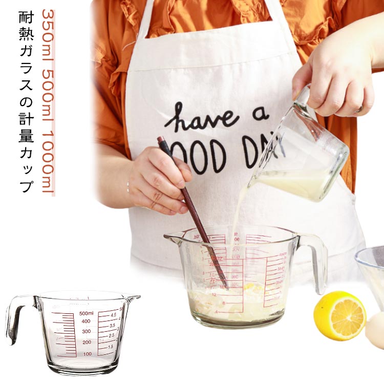 ■計量カップ 1L 耐熱ガラス 取っ手付き メジャーカップ 耐熱 ガラス 1リットル 350ml 500ml 1000ml 計量 カップ 目盛 食洗機 電子レンジ
