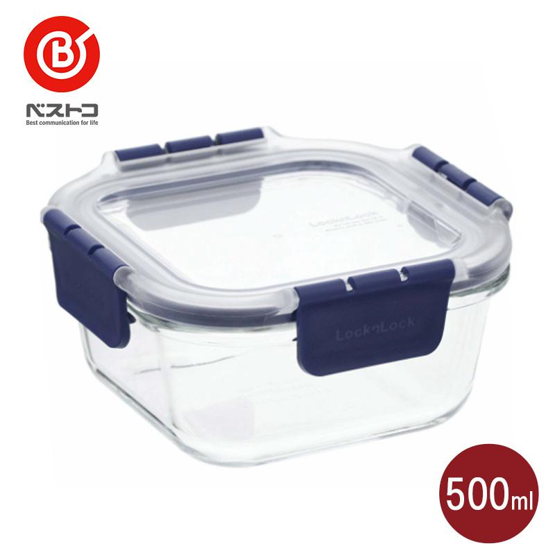 ■ベストコ ふた付き 耐熱ガラス 保存容器 スクエア 500ml ロック&ロック トップクラス LBG214 電子レンジ オーブン レンジ 密閉 スタッキ