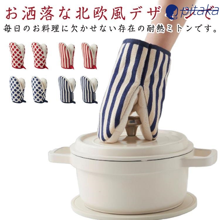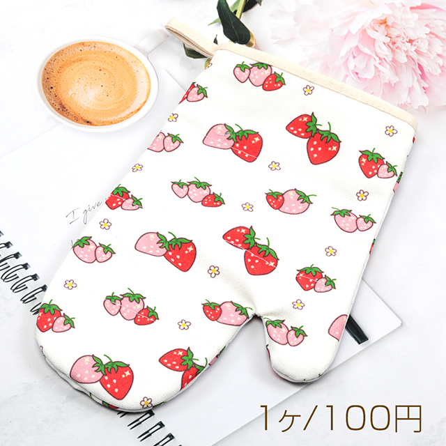 ■ミトン 綿 イチゴ 苺 いちご模様 厚手 電子レンジ オーブン 鍋つかみ キッチン用品 約17×26cm(1ヶ)