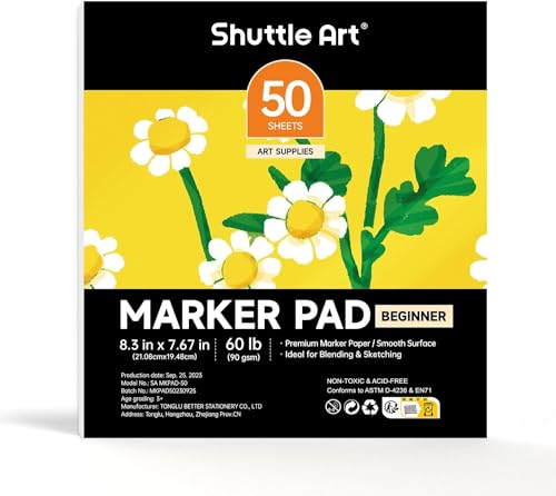 ■Shuttle Art スケッチブック マーカー用画用紙 50枚 クロッキーブック お絵かき帳 自由帳 210×195mm 90GSM アルコールマーカー用 ミシン