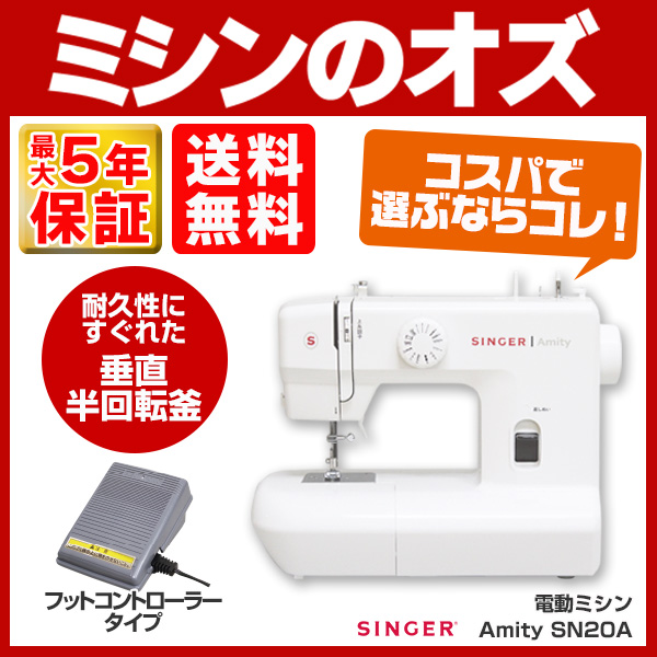 ■シンガー ミシン 本体 電動ミシン コンパクト Amity SN20A SN-20A フットコントローラー付き【送料無料】 初心者 簡単