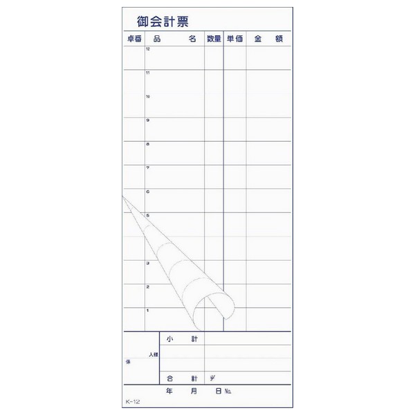 ■会計伝票 御会計票 K-12 2枚複写・ミシン12本 50組×10冊