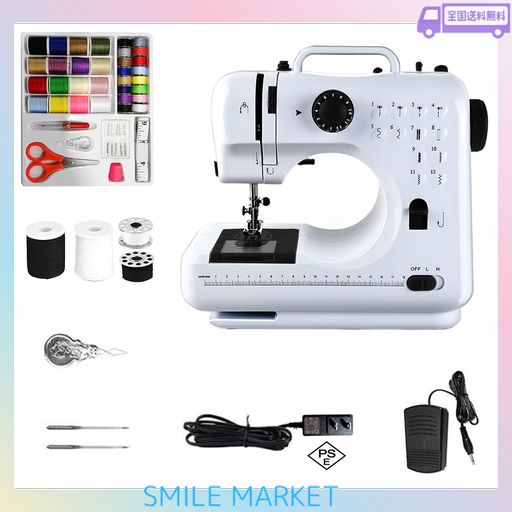 ■JUNHOTAI ミシン コンパクト 電動ミシン 白黒 家庭用 電子ミシン 初心者向け 12種類の縫い目 返し縫い機能 PSE認証済み 初心者趣味・DIY