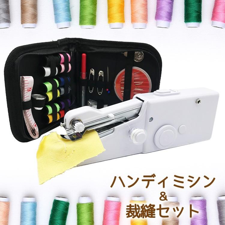 ハンディミシン 裁縫セット コンパクト 電動ミシン 片手で縫える ハンドミシン ほつれ 仮縫い ミシン ポータブル 小型ミシン ソーイングセット