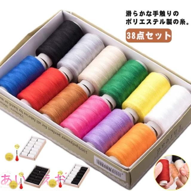 裁縫 カラフル ボビン糸 縫い針 針糸通し ミシン糸 38点セット ミシン糸ケース セット ブラック ホワイト ソーイングセット ミシン 38点セット 糸 ハンドメイド 12色 糸 常備 刺繍糸 手縫い糸 入門セット 裁縫道具