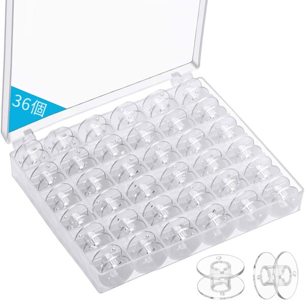 ■ボビンケース ミシン糸 収納 36個セット ボビン ミシン ボビン 透明ボビン プラスチックボビン 収納箱付き 裁縫道具 耐久性 携帯性 (36個
