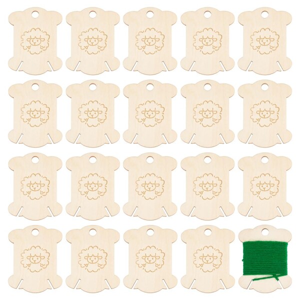 ■BENECREAT 20枚 糸巻き台紙 木製 糸巻き 愛らしい羊パターン 厚さ3mm 刺繍糸 巻き取り 67.5*53mm 糸ホルダー 糸巻きプレート ミシン