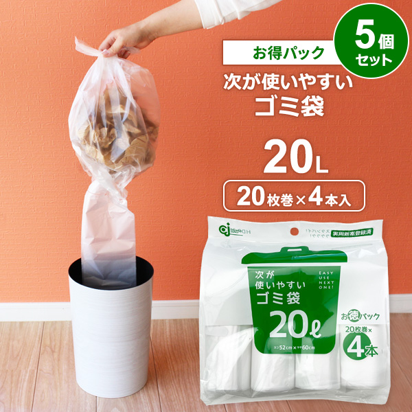 ■次が使いやすいゴミ袋(お得パック) 20L 4本(80枚分) ×5個セット HDR-20L-4 | ごみ袋 ロール ポリ袋 半透明 ビニール袋 20L ミシン
