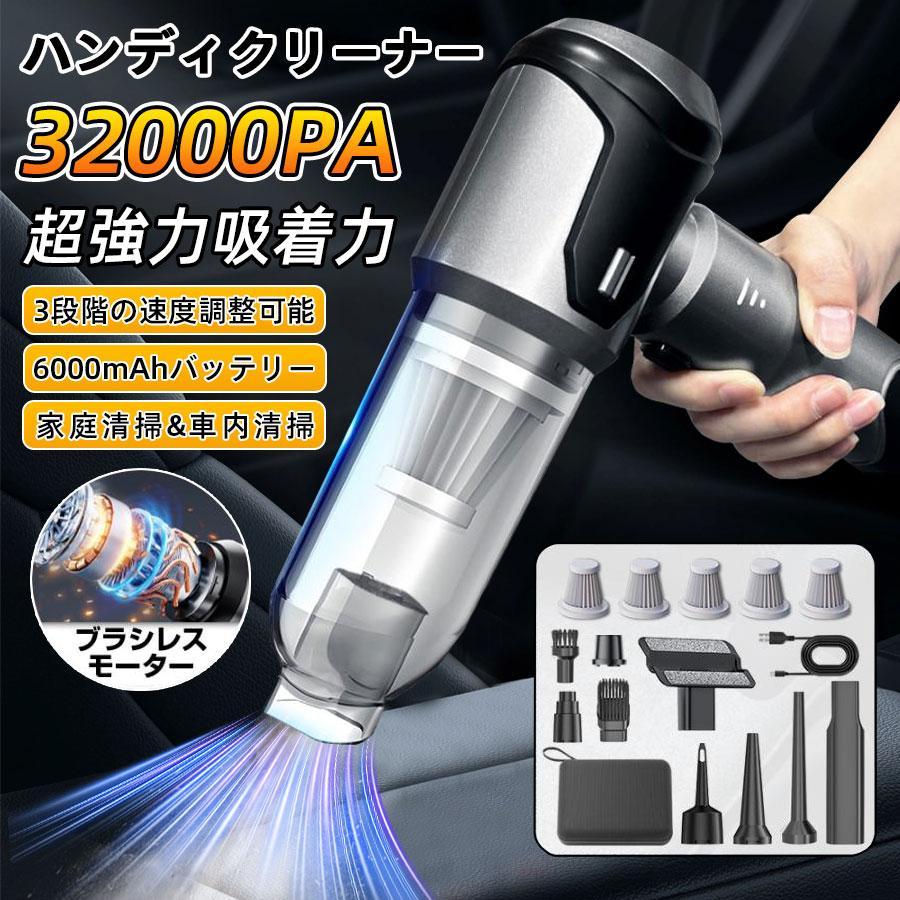 ハンディクリーナー 掃除機 車載掃除機 一台2役 小型 32000pa 静音 強力吸引 3段階調整可 ミニ掃除機 コードレス ブラシレスモーター 家庭用 車載用 耐用