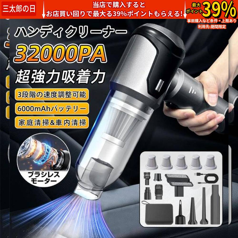 ■ハンディクリーナー 掃除機 車載掃除機 一台2役 小型 32000pa 静音 強力吸引 3段階調整可 ミニ掃除機 コードレス ブラシレスモーター 家