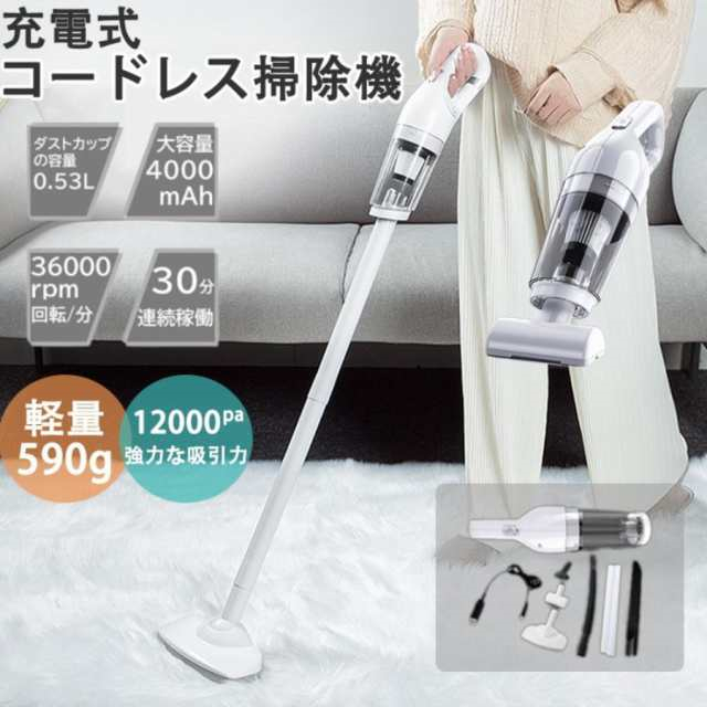 掃除機 コードレス 充電式 連続稼働30分 小型 軽量 コンパクト ハンディ掃除機 スティッククリーナー スティック型 一人暮らし ハンディクリーナー ホワイト USB充電式 Type-C 車載掃除機 車用掃除機 12000pa 4000m Ah 強力