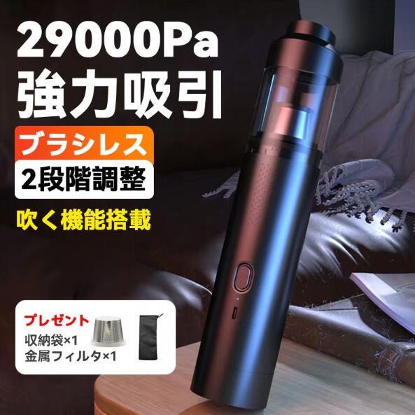 ■ハンディクリーナー 掃除機 コードレス 強力 吸引 車 車用 車載 ミニ 小型 家庭用 ブラシレス モーター 29000 pa 静音 充電式 サイクロン