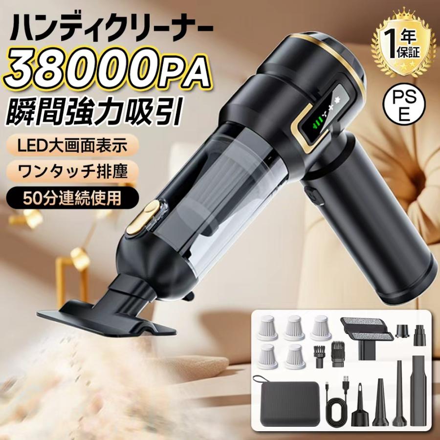 ■新型 ハンディクリーナー 掃除機 小型 38000pa ワンタッチ開閉 3段階調整可 ミニ掃除機 コードレス 静音 強力吸引 家用 車載用 充電式 ミ