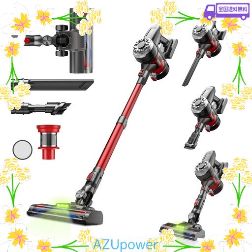 ■掃除機 コードレス スティック型 50000Pa ハイパワー 強力吸引 4WAY 洗えるフィルター 4種類ヘッド 角度調節可能 充電式 静音作動 LEDラ