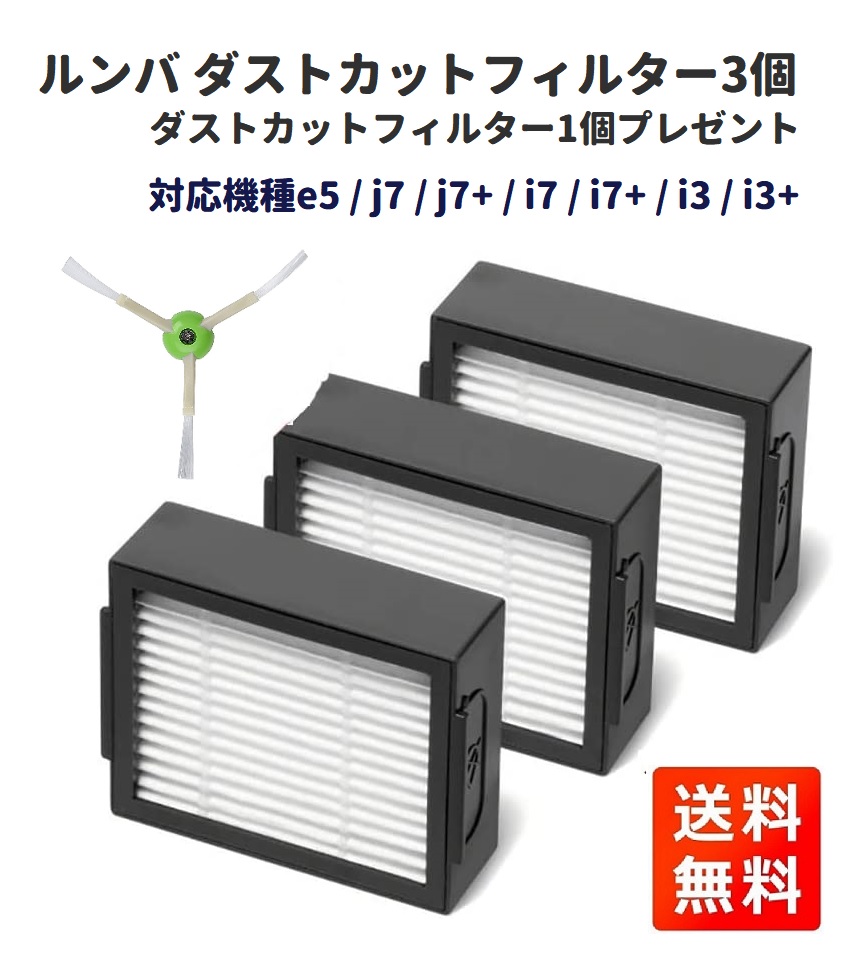 ■iRobot ルンバ ダストカットフィルター 交換用パーツ e5 j7 j7+ i7 i7+ i3 i3+ 掃除機 3個 プレゼントブラシ付き