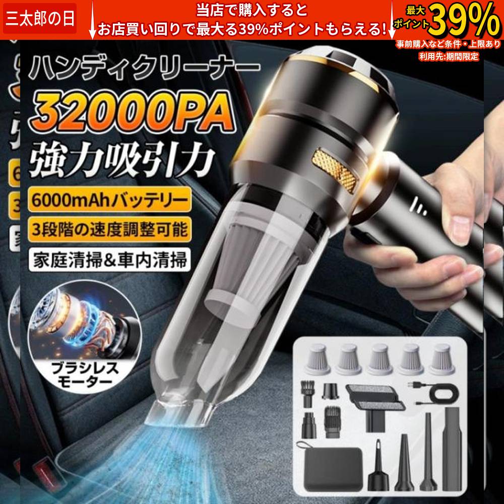 ■【在庫処分9980円→7800円】超強力 掃除機 ハンディクリーナー コードレス 車用掃除機 強力 吸引 充電式 卓上 クリーナー 軽量 車載 USB