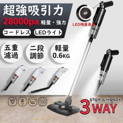 ■掃除機 コードレス 軽量 強力吸引 充電式 4WAY 50000pa ブラシレスモーター 着脱式バッテリー 家庭用 LEDライト搭載 スティック型 クリー