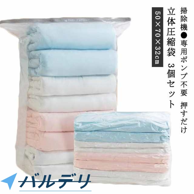 ■立体 圧縮袋 3個セット 衣類 掃除機不要 押すだけ 旅行用 圧縮ボックス 掃除機 吸引機 ポンプ 不要 エアーポンプ 搭載 出張 衣替え コー