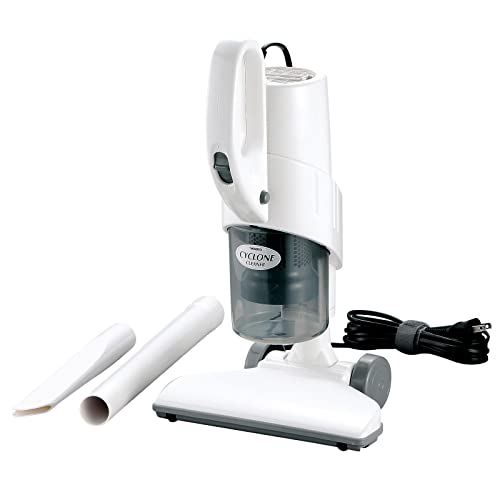 軽量コンパクトなサイクロン方式のハンディクリーナー サイクロン部は集じん分離性能向上により吸込力持続可 軽量なので取りまわしが楽。延長パイプを用いた床掃除も可能。 サイズ:約W225*D220*H390mm 本体重量:約1.5kg