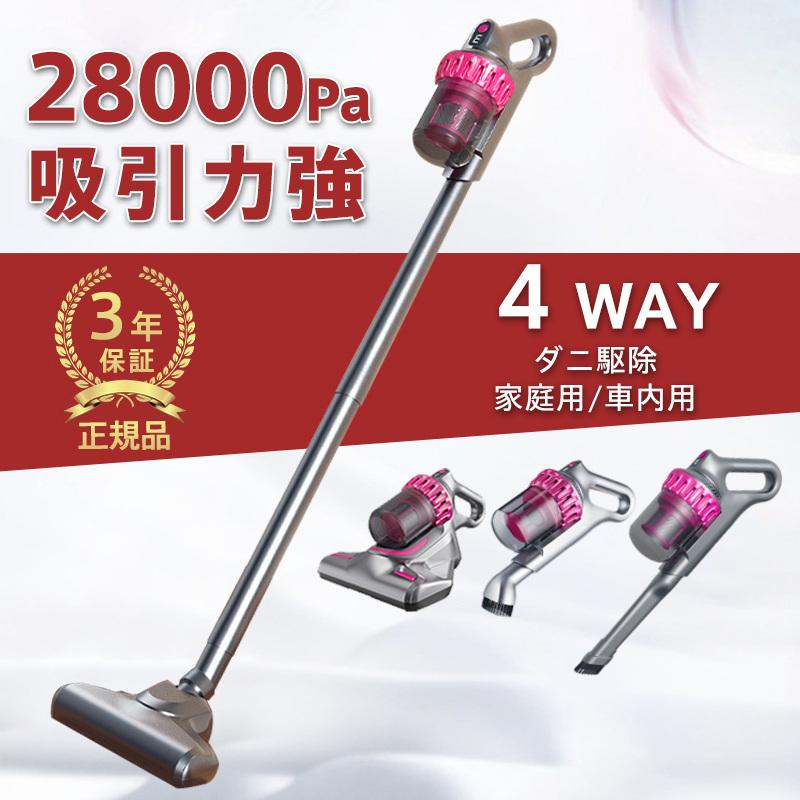 掃除機 コードレス 強力 充電式 サイクロン ハンディー クリーナー 28000pa 吸引力 4WAY 省エネ 軽量 静音 小型 紫外線殺菌 ダニ駆除付き 付き
