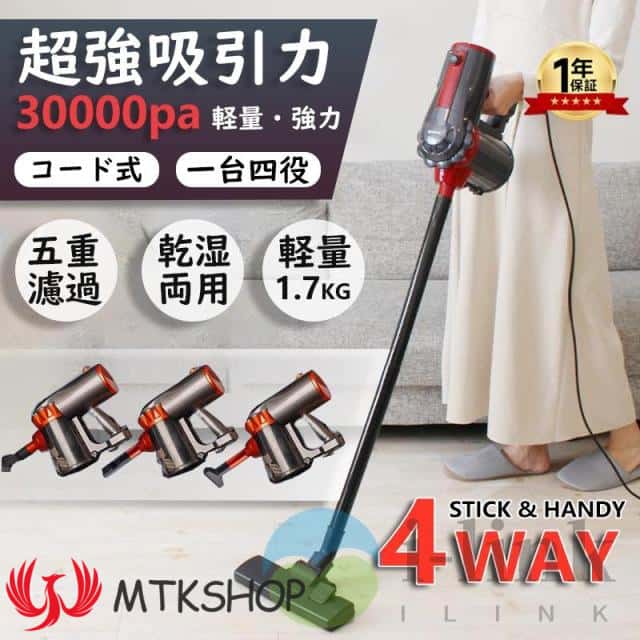 2025 掃除機 コード式 サイクロン スティック掃除機 30000pa 4WAY 超軽量 静音 乾湿両用 小型 強力 吸引力 ハンディー クリーナー 省エネ お手入れ簡単 おすすめ