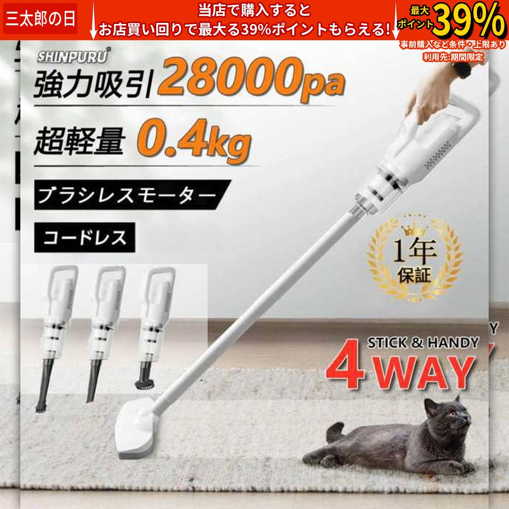 掃除機 コードレス スティック型 充電式 サイクロン 28000pa 強力吸引 軽量 0.4kg 静音 小型 ハンディ ハンディー クリーナー コンパクト 省エネ おすすめ