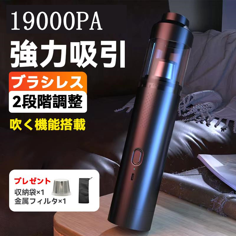 ハンディクリーナー 掃除機 コードレス 強力 吸引 車 車用 車載 ミニ 小型 家庭用 ブラシレス モーター 19000pa 静音 充電式 サイクロン式 空気入れ ブロワー