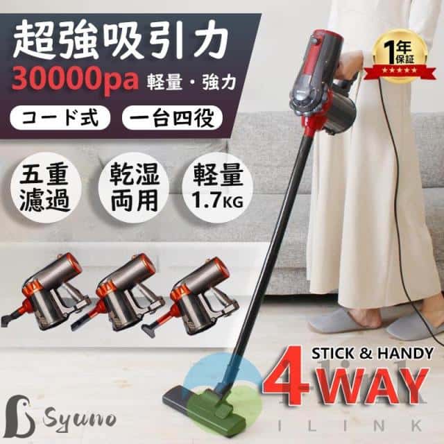 掃除機 コード式 サイクロン スティック掃除機 30000pa 4WAY 超軽量 静音 乾湿両用 小型 強力 吸引力 ハンディー クリーナー 省エネ お手入れ簡単 おすすめ 2025