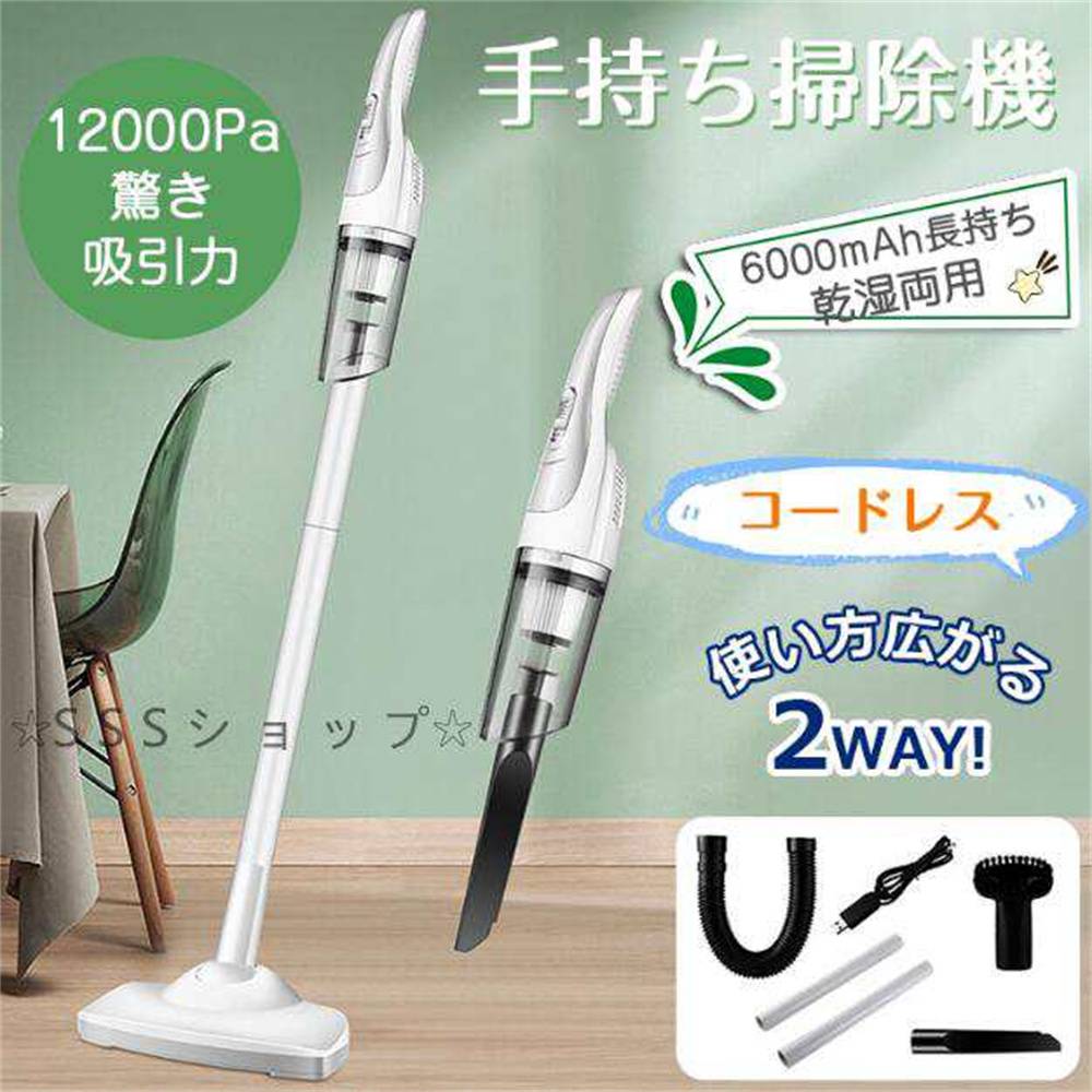 ■【クーポン対象 お買い得】掃除機 コードレス ハンディクリーナー 手持ち掃除機 2way 車載掃除機 乾湿両用 12000pa超強力吸引 サイクロン