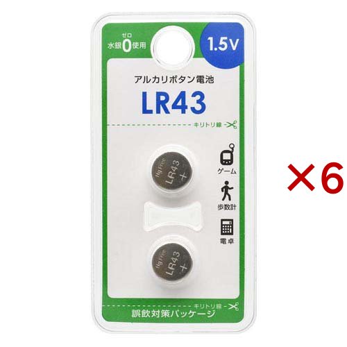 ■アルカリボタン電池 LR43(2個入×6セット)[電池・充電池・充電器]